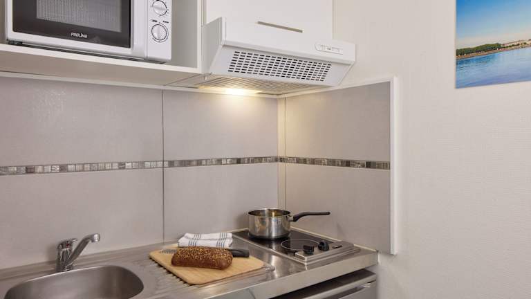 Das Hotel bietet verschiedene Verpflegungsmöglichkeiten, inklusive Snacks über einen Getränke- und Snackautomaten. Die Zimmer sind mit einer komplett ausgestatteten Küchenzeile ausgestattet, die es den Gästen ermöglicht, ihre eigenen Mahlzeiten zuzubereiten.