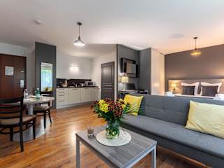 Die geräumigen und komplett möblierten Apartments verfügen über Holzböden, Sat-TV, eine voll ausgestattete Küche und ein Badezimmer mit einer Dusche. Bei Aufenthalten von mehr als 2 Nächten wird eine schnelle Reinigung ohne Wechsel von Bettwäsche oder Handtüchern durchgeführt. Die Endreinigung ist im Preis inbegriffen. Bei Aufenthalten von 7 bis 29 Nächten ist eine wöchentliche Reinigung mit Wechsel von Bettwäsche und Handtüchern, sowie die Endreinigung eingeschlossen.