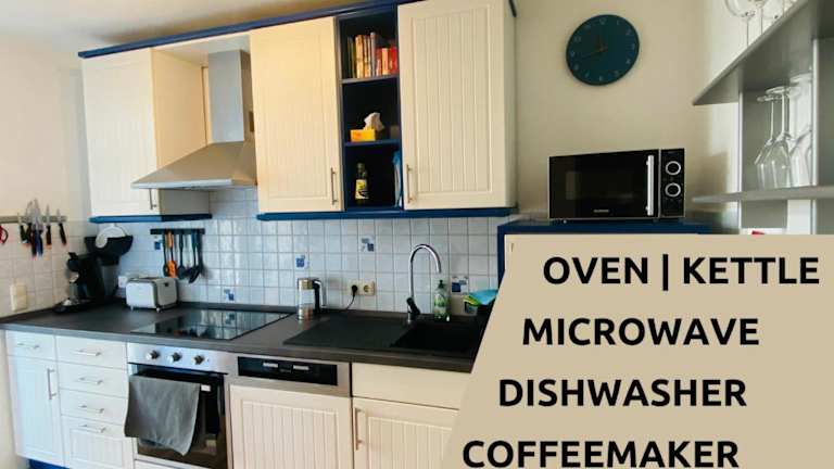 Die Ferienwohnung verfügt über zwei Schlafzimmer, eine Küche mit Kühlschrank und Geschirrspüler, einen Flachbild-TV sowie einen Sitzbereich. Ein Badezimmer mit Dusche ist ebenfalls vorhanden. Handtücher und Bettwäsche werden bereitgestellt.