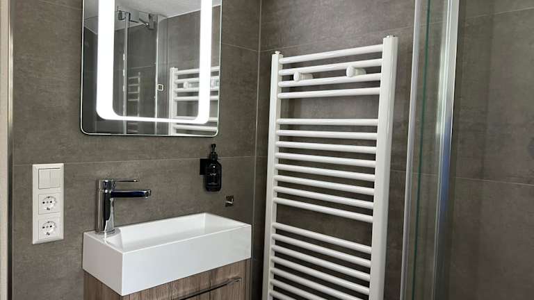 Die Ferienwohnung besteht aus 1 Schlafzimmer, einem Wohnzimmer und einer voll ausgestatteten Küchenzeile, die mit einem Kühlschrank und einer Kaffeemaschine ausgestattet ist. Zudem beinhaltet sie 1 Badezimmer mit einer Dusche und kostenlosen Pflegeprodukten. Handtücher und Bettwäsche werden in der Ferienwohnung angeboten.
