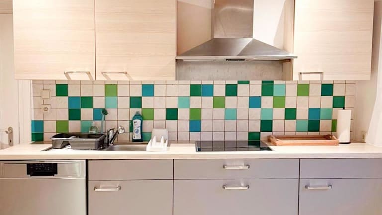 Die Unterkunft Zentrale Ferienunterkunft bietet verschiedene Wohneinheiten, teilweise ausgestattet mit einer Küche, die einen Kühlschrank, einen Geschirrspüler und eine Herdplatte umfasst.