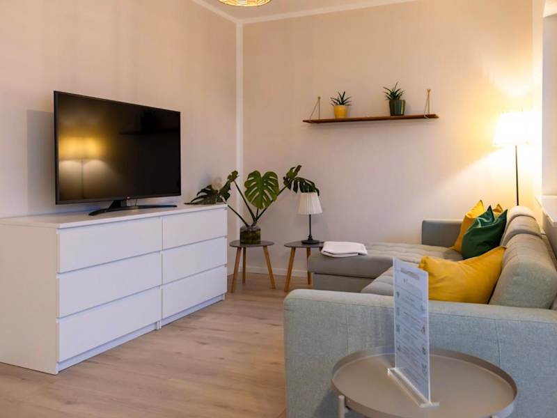 Die Ferienwohnung umfasst ein Schlafzimmer, eine voll ausgestattete Küche mit Kühlschrank und Geschirrspüler sowie ein Badezimmer mit Dusche. Ausserdem sind ein Flachbild-TV und ein gemütlicher Sitzbereich vorhanden. Es werden Handtücher und Bettwäsche bereitgestellt. Eine Terrasse lädt zum Verweilen ein.