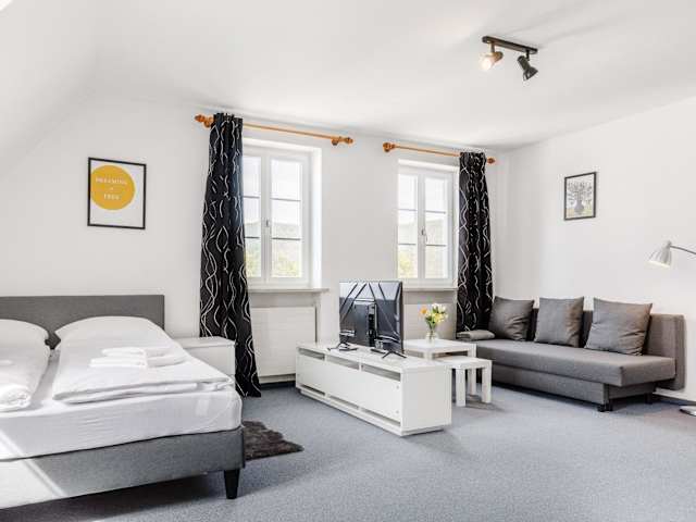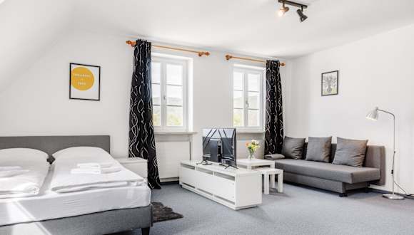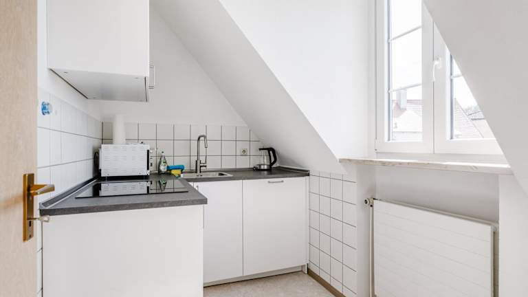 Die Ferienwohnung umfasst ein Schlafzimmer und ist mit einer voll ausgestatteten Küche ausgestattet, die einen Kühlschrank und einen Ofen beinhaltet. Zudem verfügt das Apartment über ein Badezimmer mit Dusche und Haartrockner. Handtücher und Bettwäsche werden zur Verfügung gestellt.