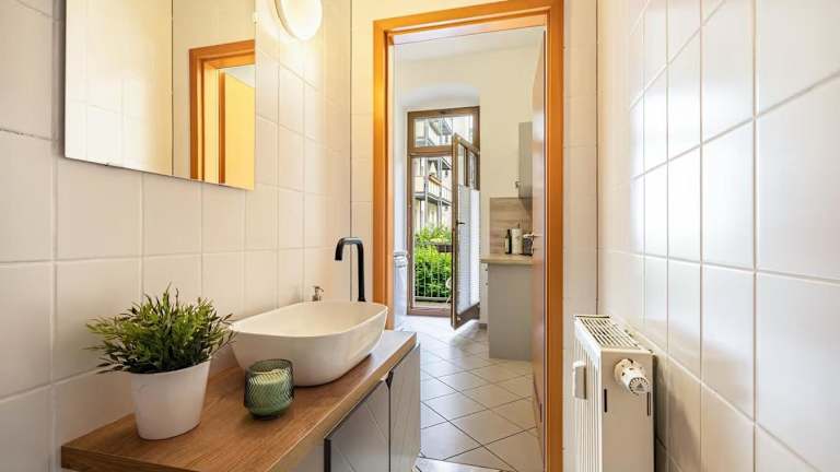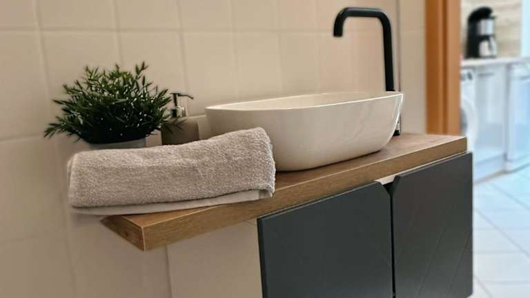 Die Ferienwohnung besteht aus 1 Schlafzimmer, einem Wohnzimmer, einer voll ausgestatteten Küche mit Kühlschrank und Kaffeemaschine sowie einem Badezimmer mit Dusche und kostenlosen Pflegeprodukten. Bettwäsche und Handtücher werden bereitgestellt.