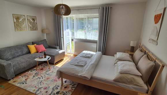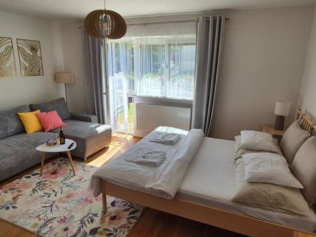 Die Ferienwohnung besteht aus einem Schlafzimmer, einem Wohnzimmer und einer voll ausgestatteten Küche mit Kühlschrank und Kaffeemaschine. Zudem gibt es ein Badezimmer mit Dusche und kostenlosen Pflegeprodukten. Zur Unterhaltung steht ein Flachbild-TV mit Satellitenkanälen zur Verfügung.