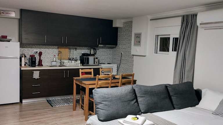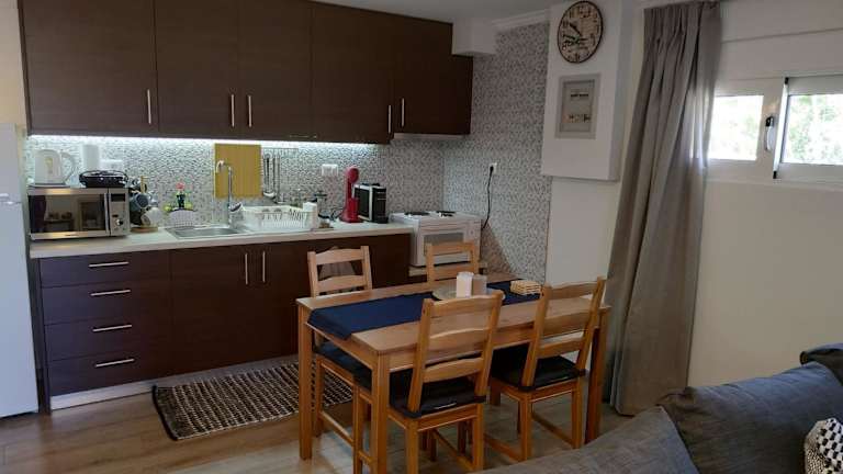 Zeus Studio on Palamidi foothills bietet eine heimelige Unterkunft mit Bergblick. Die Ferienwohnung umfasst eine Veranda/Patio und eine voll ausgestattete Küchenzeile. Die Unterkunft ist klimatisiert und verfügt über ein Wohnzimmer sowie ein Badezimmer mit Dusche und kostenlosen Pflegeprodukten.