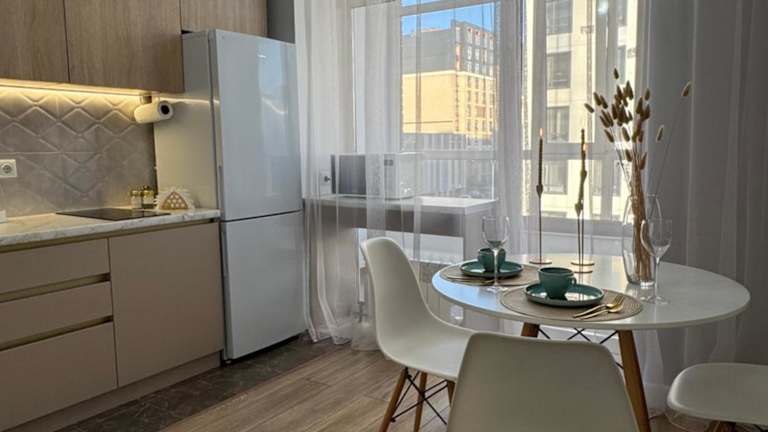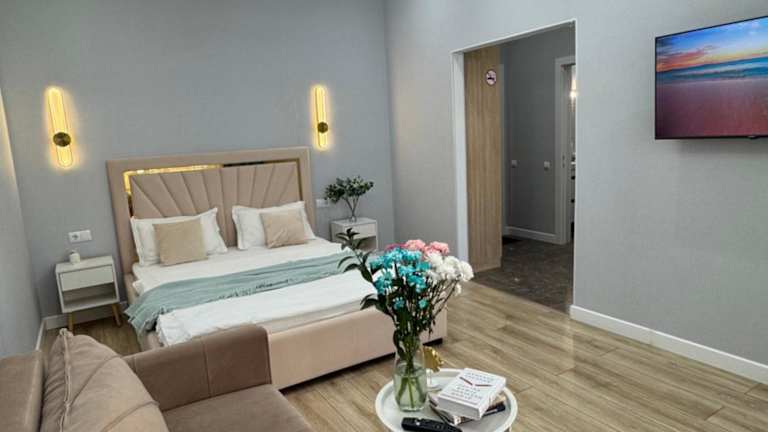 Die Unterkunft ЖК Champion с новым ремонтом bietet moderne Übernachtungsmöglichkeiten mit einem Balkon sowie kostenlosem Wifi. Es handelt sich um eine Ferienwohnung mit Klimaanlage, die seit kurzem renoviert wurde.