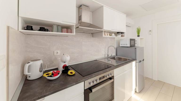 Die Ferienwohnung verfügt über ein Schlafzimmer sowie ein Wohnzimmer und ist mit einer voll ausgestatteten Küche eingerichtet, die einen Kühlschrank und eine Kaffeemaschine umfasst. Ein Badezimmer mit Dusche und kostenlosen Pflegeprodukten ist ebenfalls vorhanden. Handtücher und Bettwäsche werden zur Verfügung gestellt. Die Wohnung ist klimatisiert und bietet zudem einen herrlichen Bergblick.