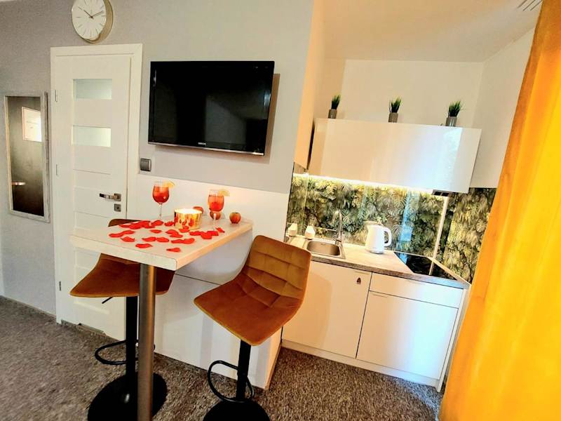 Zielony Zakątek z balkonem ist eine Nichtraucherunterkunft, die von einem privaten Gastgeber geführt wird und sich durch Bequemlichkeiten wie kostenloses Wifi und kostenlose Parkiermöglichkeiten auszeichnet. Die Unterkunft bietet eine 24-Stunden-Rezeption und eine Terrasse für die Gäste.