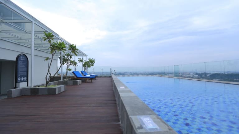 Die Unterkunft bietet ein Fitnesscenter sowie einen ganzjährig geöffneten Aussenpool, in dem Gäste entspannen und den Ausblick geniessen können. Sonnenstühle und Liegen sind am Pool vorhanden.