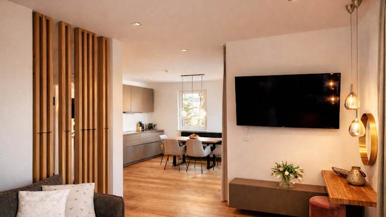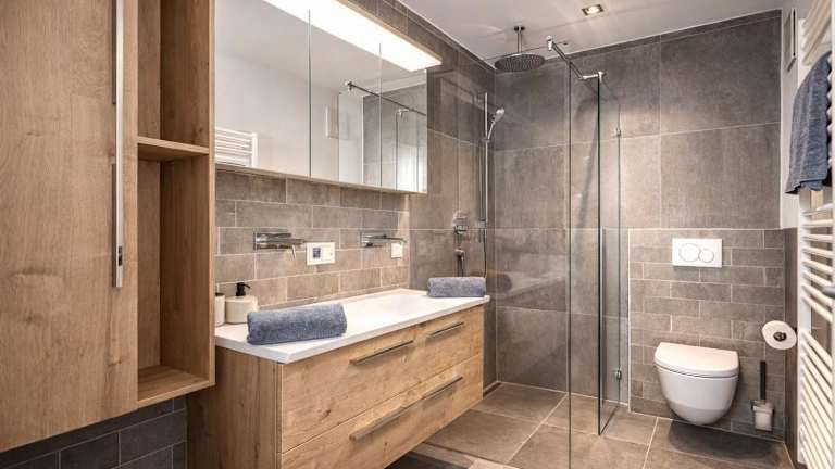Die Ferienwohnung umfasst 3 Schlafräume, ein Wohnzimmer sowie eine gut ausgestattete Küche mit Kühlschrank und Geschirrspüler. Zudem sind zwei Badezimmer mit Dusche vorhanden. Bettwäsche und Handtücher werden bereitgestellt. Die Unterkunft bietet auch schallisolierte Zimmer und allergikerfreundliche Optionen.