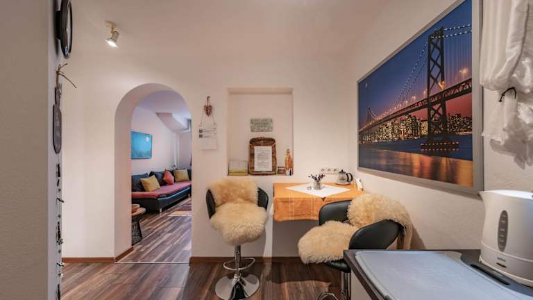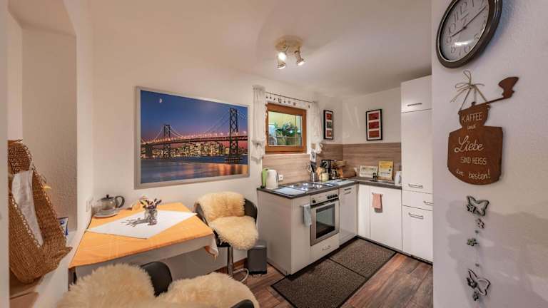 Die Ferienwohnung besteht aus 1 Schlafzimmer, einem Wohnzimmer und einer voll ausgestatteten Küche mit Kühlschrank und Kaffeemaschine. Zudem verfügt das Badezimmer über eine Dusche und einen Haartrockner. Handtücher und Bettwäsche werden bereitgestellt.