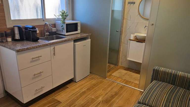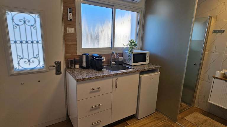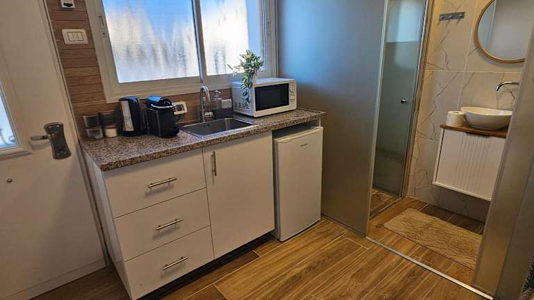 Das Zimmer Belev HaKikar- Dead Sea liegt in Neʼot HaKikar, nur 37 km von Ein Bokek entfernt. Die Umgebung bietet viele Möglichkeiten für Outdoor-Aktivitäten wie Wandern und Radfahren. Sie können auch den Garten und die Gemeinschaftslounge nutzen, um sich zu entspannen.