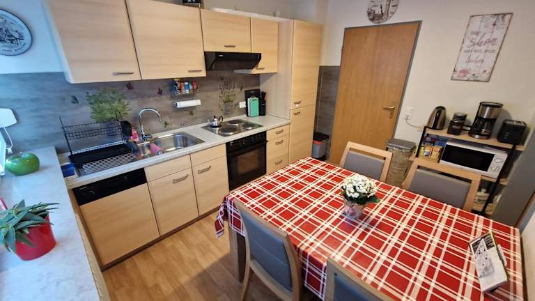 Die Unterkunft bietet eine voll ausgestattete Küche mit Kühlschrank, Geschirrspüler, Mikrowelle und Kaffeemaschine. Essenslieferungen in die Unterkunft sind möglich.