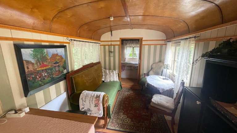 Das Zirkuswagen am Landhaus Labes (Stechlinsee) bietet eine heimelige Atmosphäre mit Übernachtungsmöglichkeiten in einem charmanten Zirkuswagen. Die Unterkunft ist ideal für einen erholsamen Aufenthalt in der Natur.