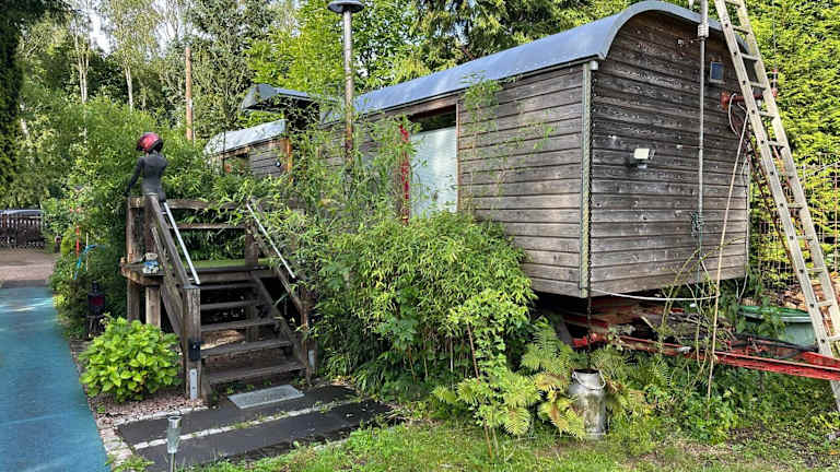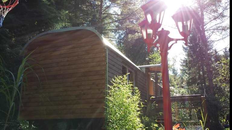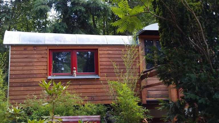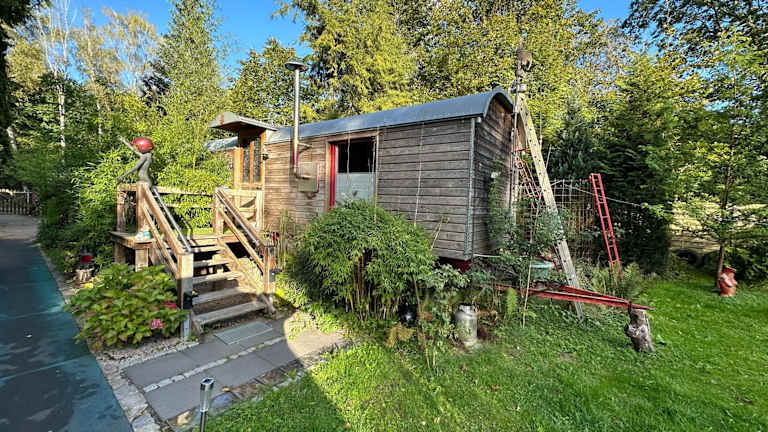 Die Unterkunft Zirkuswagen im Grünen bietet Übernachtungsmöglichkeiten in einer einzigartigen Zelt-Lodge-Umgebung, umgeben von einem Garten und einer Terrasse. Die Gäste können sich auf eine heimelige Atmosphäre mit Gartenblick freuen und profitieren von kostenlosem Wifi sowie einer Klimaanlage.