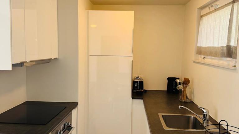 Die Ferienwohnung beinhaltet 1 Schlafzimmer, eine voll ausgestattete Küche mit Kühlschrank und Ofen sowie ein Badezimmer mit Dusche, Haartrockner und Waschmaschine. Handtücher und Bettwäsche werden zur Verfügung gestellt.