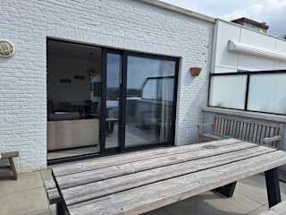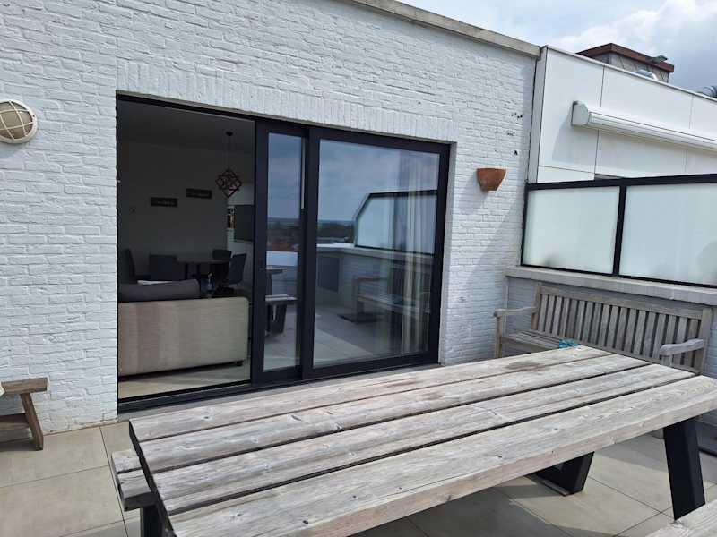 Das sonnig vernieuwd penthouse bietet einen wunderschönen Meerblick und einen eigenen Strandbereich. Die Unterkunft kombiniert modernen Stil mit einer heimeligen Atmosphäre und ist perfekt gelegen für einen entspannten Aufenthalt am Meer.