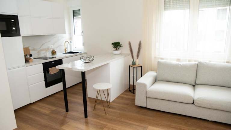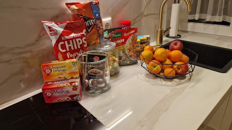 Die Ferienwohnung besteht aus 1 Schlafzimmer, einem Wohnzimmer und einer voll ausgestatteten Küche, zu der ein Kühlschrank und eine Kaffeemaschine gehören. Zudem umfasst das Badezimmer eine Dusche sowie kostenlose Pflegeprodukte. Handtücher und Bettwäsche werden zur Verfügung gestellt.