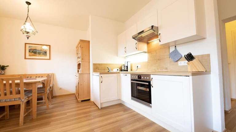 Die Ferienwohnung verfügt über zwei Schlafzimmer und bietet zeitgemässe Ausstattung mit einem TV sowie einer voll ausgestatteten Küche. Diese umfasst einen Kühlschrank und einen Geschirrspüler. Handtücher und Bettwäsche werden bereitgestellt.