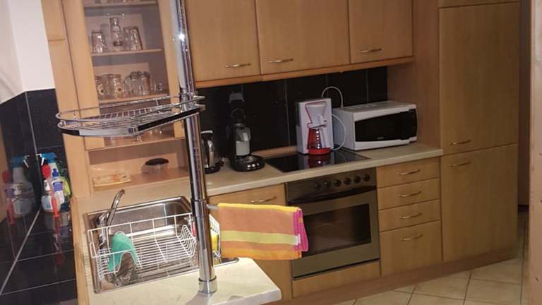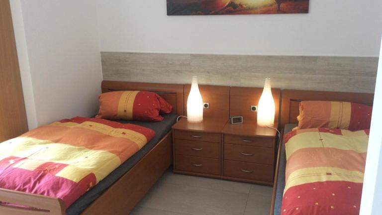 Die Ferienwohnung umfasst 2 Schlafzimmer, ein Wohnzimmer sowie eine voll ausgestattete Küche mit Kühlschrank und Kaffeemaschine. Des Weiteren stehen ein Badezimmer mit Dusche und Haartrockner sowie ein Flachbild-TV mit Satellitenkanälen, eine PS3-Spielekonsole und ein CD-Player zur Verfügung.