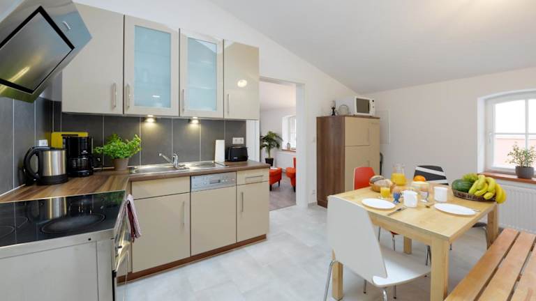 Jede Wohneinheit in Zur Alten Schmiede ist mit einer voll ausgestatteten Küche inklusive einem Esstisch, einem Flachbild-TV mit Satellitenkanälen sowie einem eigenen Badezimmer mit Dusche und Haartrockner ausgestattet. Zudem stehen ein Kühlschrank, ein Geschirrspüler, ein Ofen, eine Kaffeemaschine und ein Wasserkocher zur Verfügung.