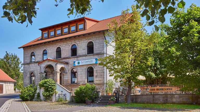 Das Hotel Zur Glashütte liegt in dem idyllischen Ort Fabrikschleichach in Bayern. Es befindet sich etwa 32 km vom Hauptbahnhof Bamberg und der Konzert- und Kongresshalle Bamberg entfernt. Die Unterkunft bietet eine ruhige und natürliche Umgebung, ideal für erholsame Spaziergänge und Ausflüge in die Natur.