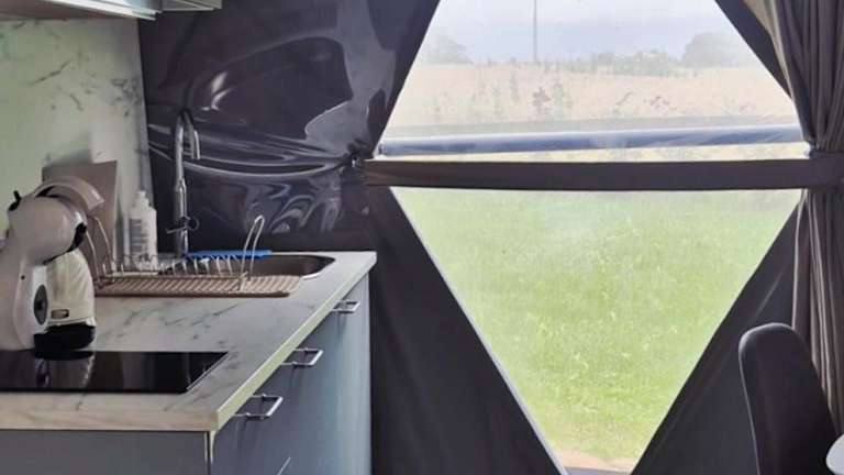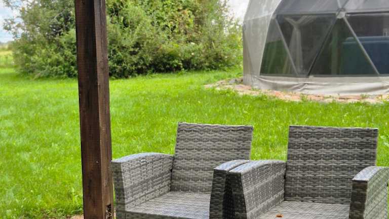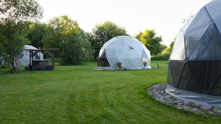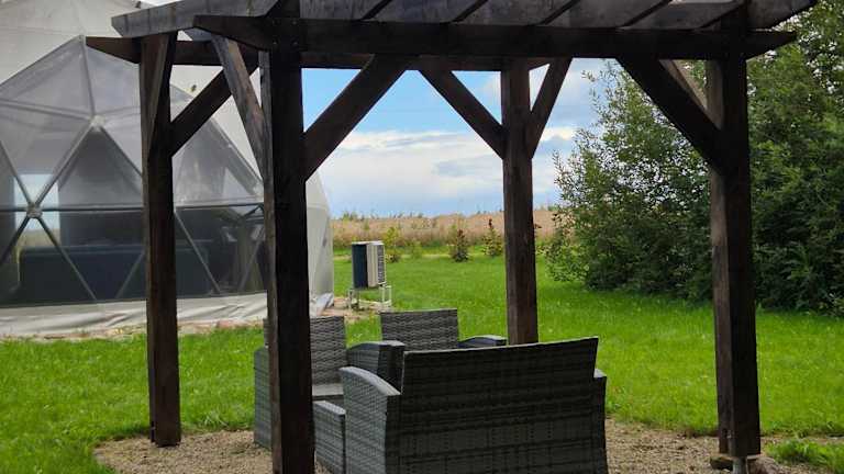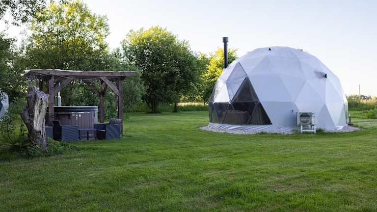Die Unterkunft Žvaigždžių slėnis - Kupolai befindet sich in Sližiai, etwa 50 km vom Flughafen Kaunas entfernt. Die Umgebung bietet eine ruhige Atmosphäre mit einem schönen Garten und Zugang zu einem Strand, ideal für erholsame Ferien.