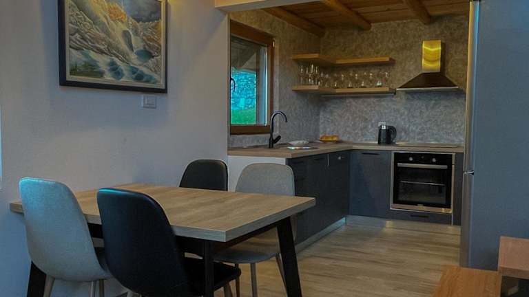 Das Ferienhaus bietet ein Schlafzimmer, ein Wohnzimmer und eine voll ausgestattete Küche mit Kühlschrank und Wasserkocher. Zudem sind ein Badezimmer mit Dusche und Haartrockner vorhanden. Handtücher und Bettwäsche werden bereitgestellt. Die Unterkunft ist klimatisiert und bietet kostenfreies Internet sowie eine Nichtraucherumgebung.