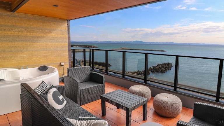 Die Unterkunft ル グランブリュリゾート長沢 bietet Übernachtungsmöglichkeiten mit Gemeinschaftslounge, Garten und Terrasse. Die Zimmer bestechen durch einen herrlichen Meerblick sowie einen Whirlpool und sind klimatisiert.