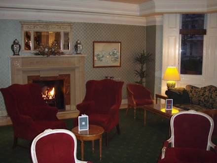 Die Lobby des Hotels mit echtem Kaminfeuer. Aufgenommen am 30.12.2010
