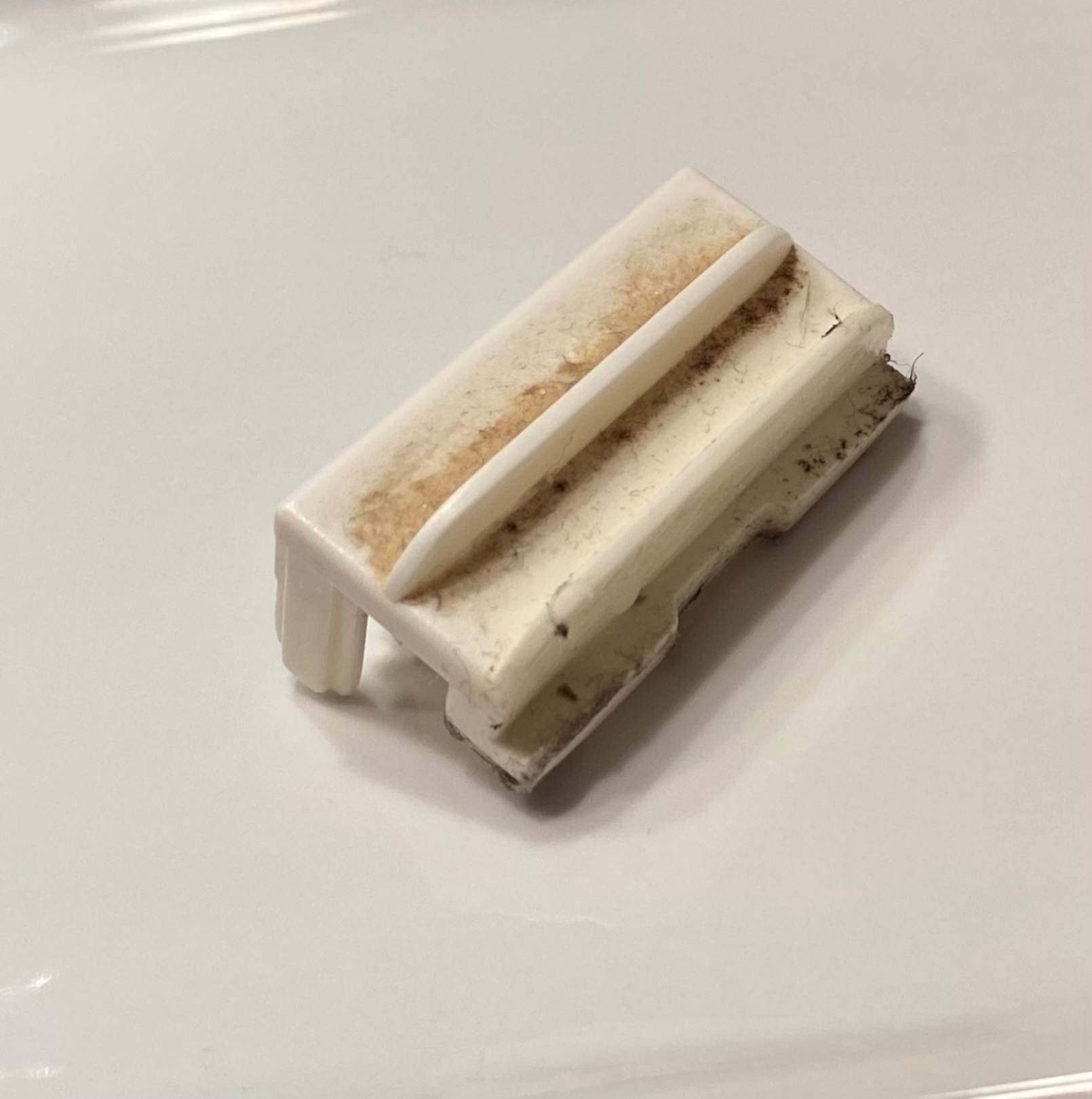Kaputter Teil aus der Führung der Schiebetüre bei der Dusche.
