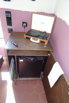 Minibar mit Plattenspieler oben auf