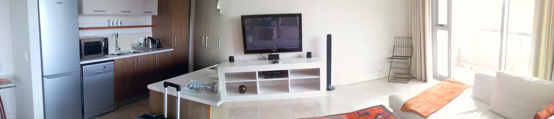 Wohnzimmer mit Küche im Appartment.