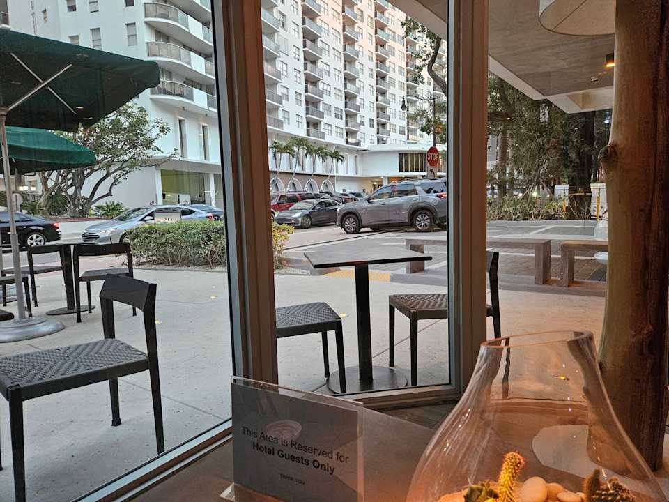 Von Lobby auf Starbucks (neben Lobby, gleiches Gebäude) und Valet Parking area