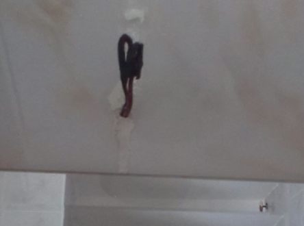 Gevaarlijk electriciteits draad in badkamer