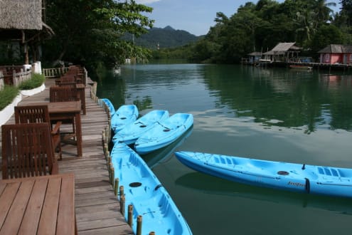 Die neuwertigen 2 er Kajaks an der Anlegestelle des Aana Resorts