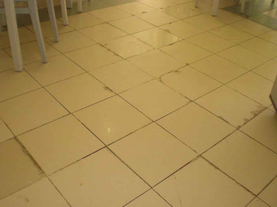 Die kaputten und schmutzigen Fliesen im Restaurant
