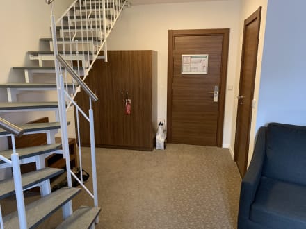Blick zur Zimmertür der Suite und der Aufgang in den oberen Teil !