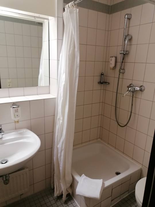 Bad mit Dusche, leider mit Vorhang