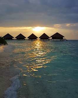 AußenansichtWasservillen bei Sonnenuntergang