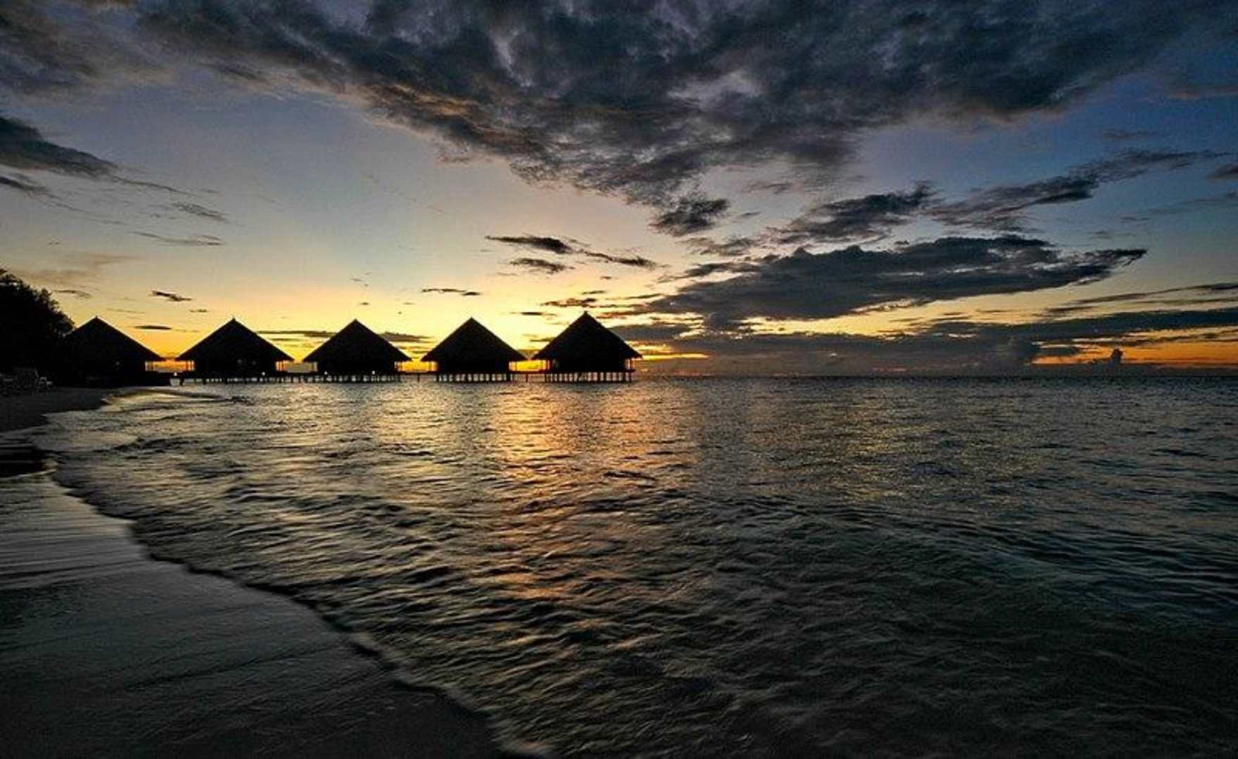 Sonnenuntergang Wasserbungalows