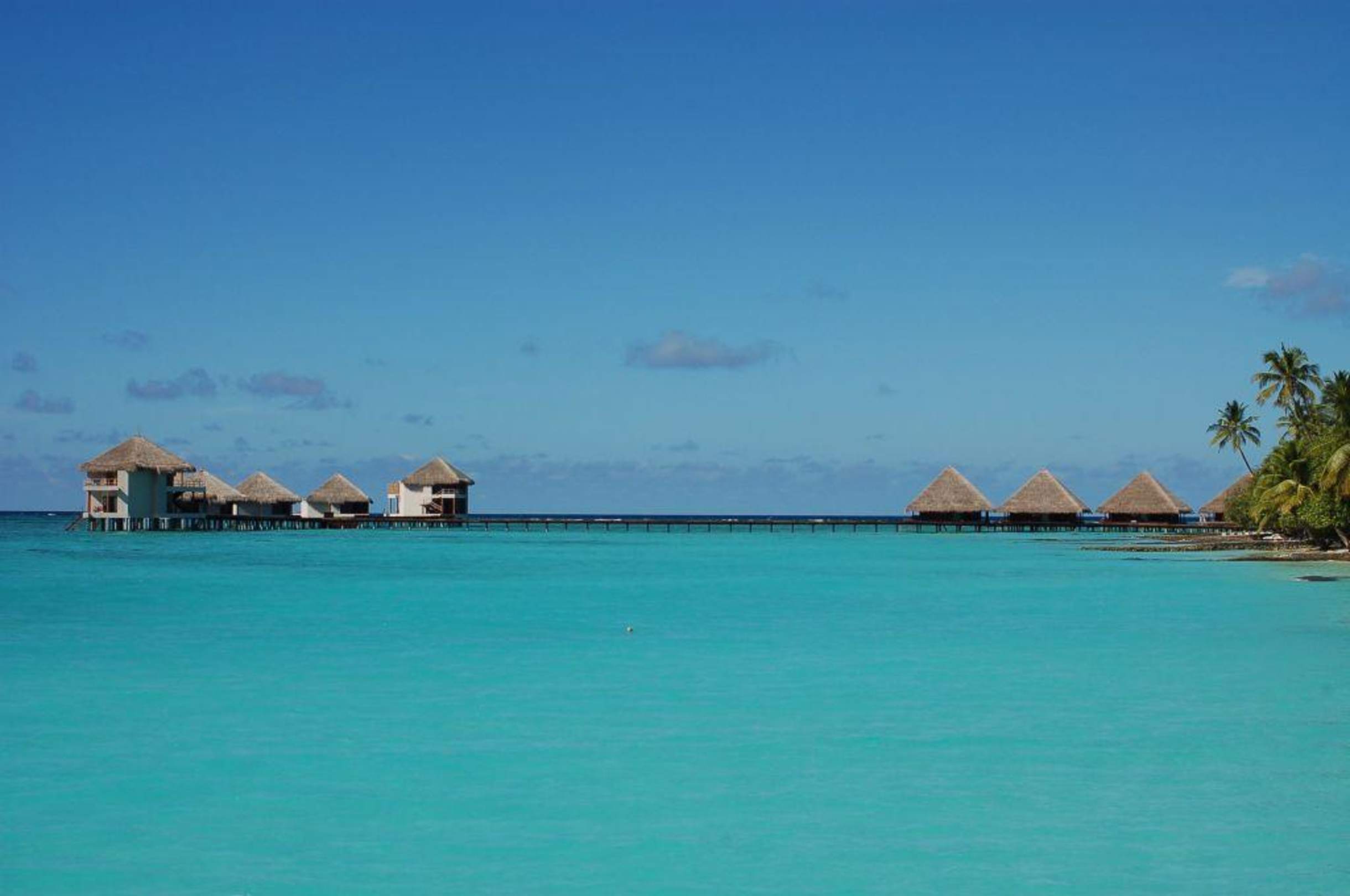 "Neue" und "alte" Wasserbungalows (von links)