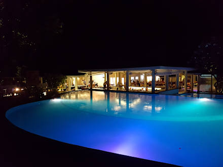 Der Pool mit Bar am Abend