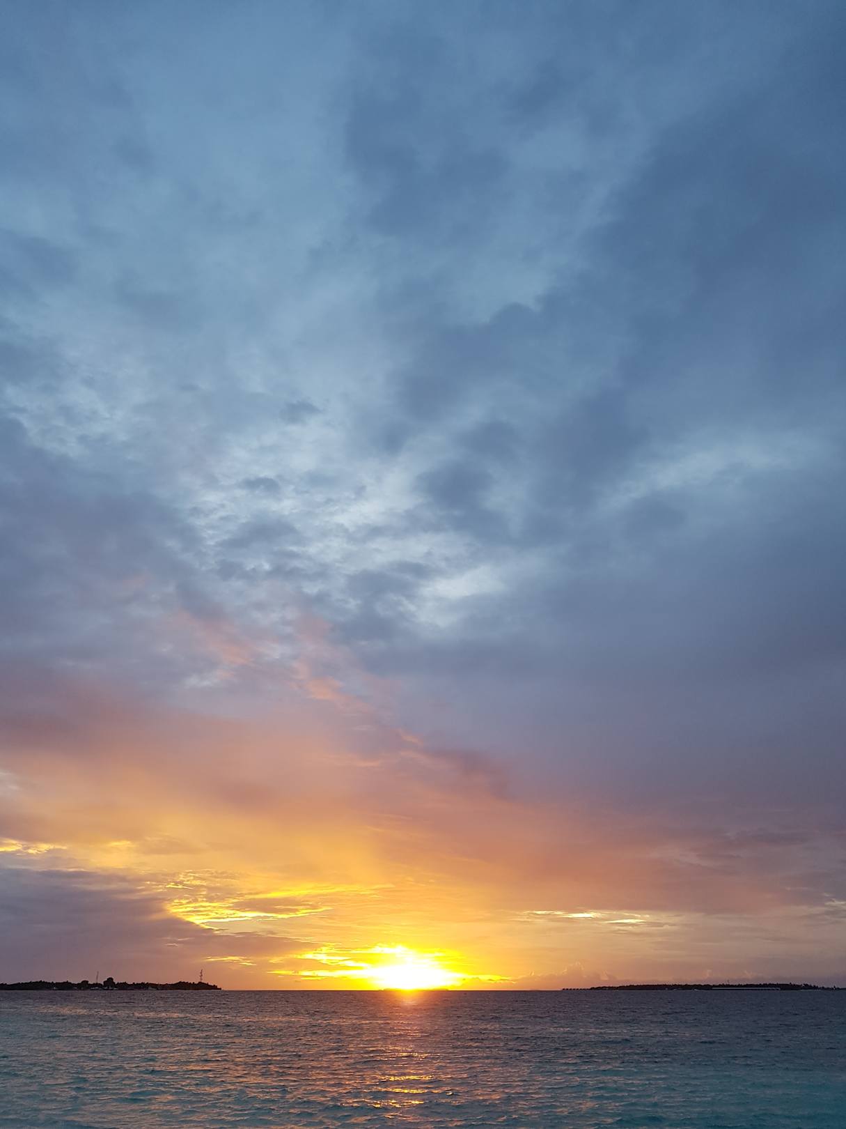 Sonnenuntergang mit Aussicht auf die Nachbarinsel Meedhoo