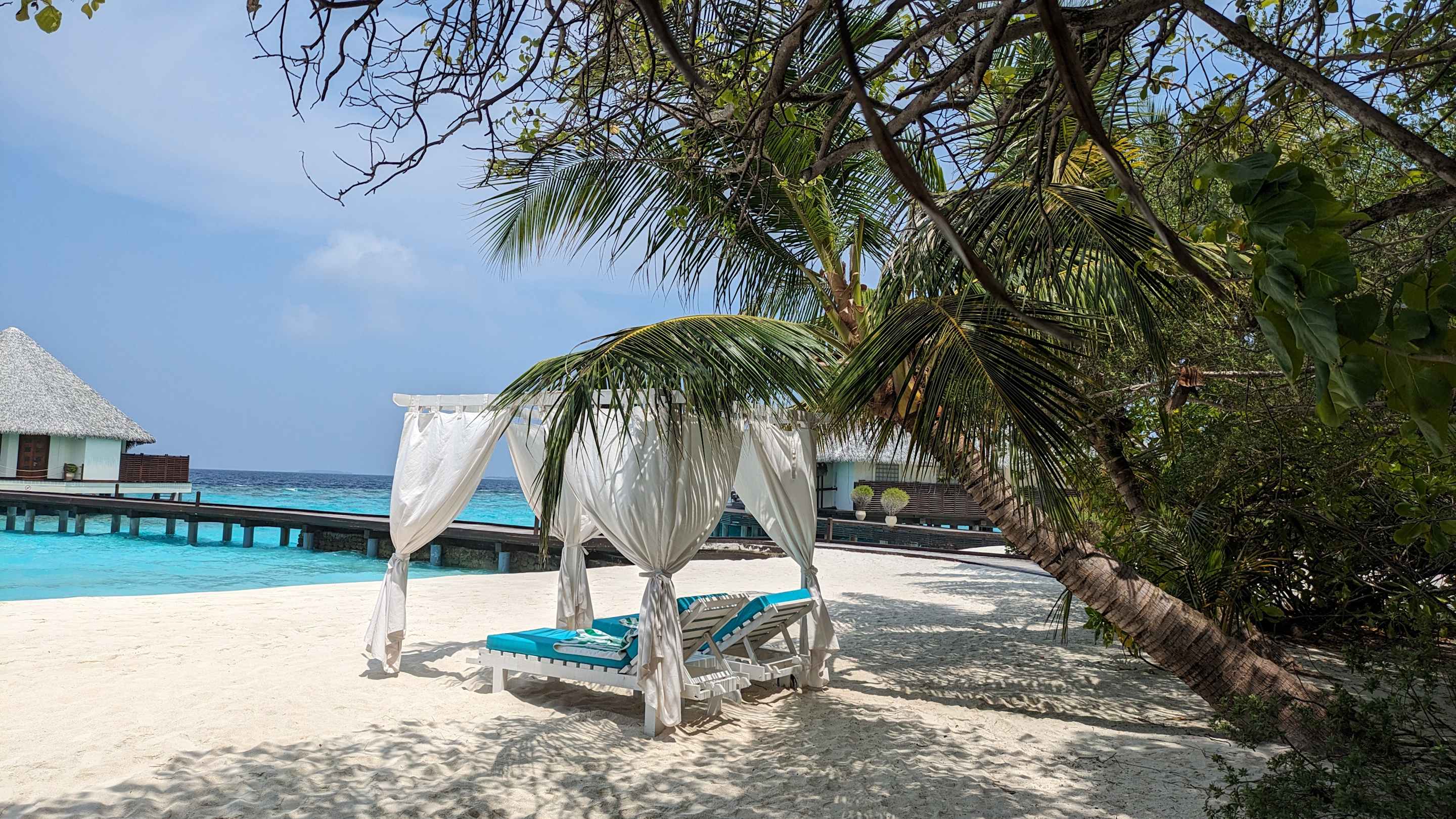Wasserbungalows und Strand