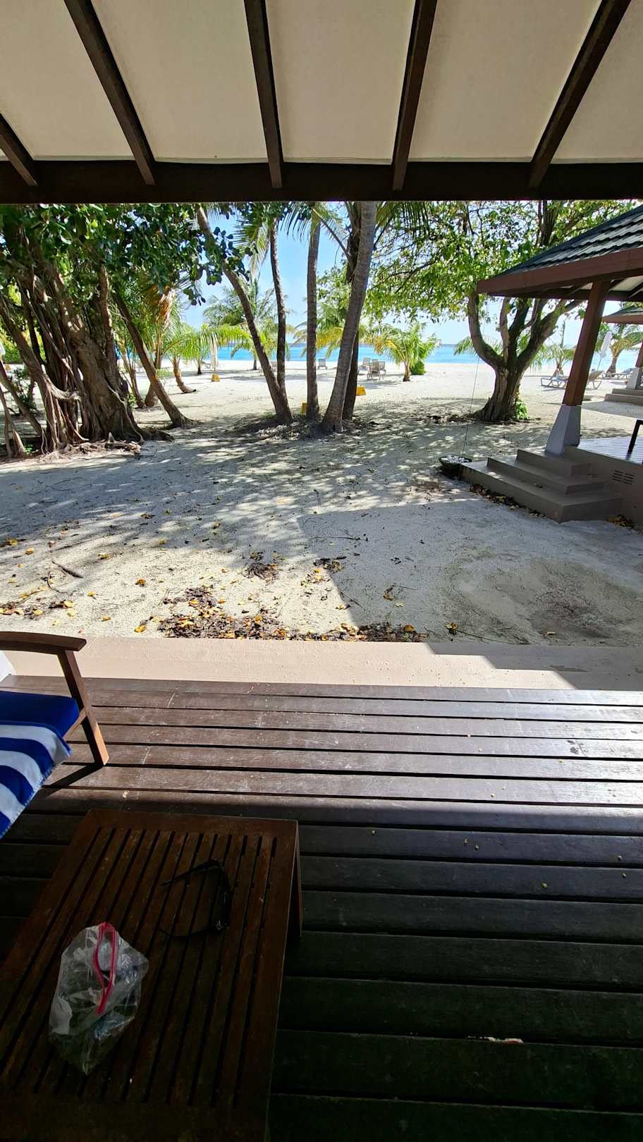 Aussicht von unserer Terrasse. Solches Zimmer hätten wir nie bekommen sollen. 🤨