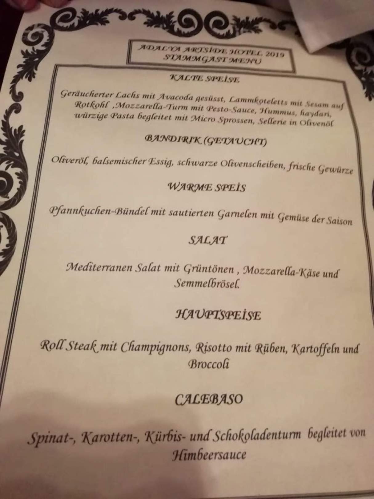 Speisekarte Stammgästeessen