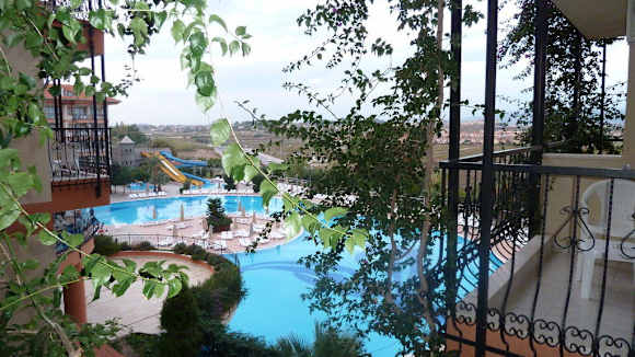 Der Blick zum Pool von meinem Zimmer