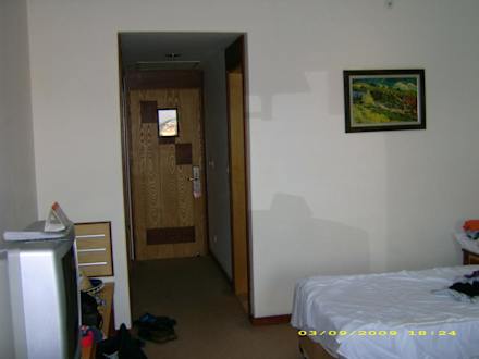 Zimmer 4xxxDZ mit Extrabett. Einzelbett war groß genug & neben Ehebett. Zimmer war ausreichend bestückt. Für 3 P war die Größe angemessen! Bad mit Dusch/Wanne & 1 Waschbecken. Wir fühlten uns wohl. Schließlich verbringt man im Normalfall nur seine Nächte im Zimmer!